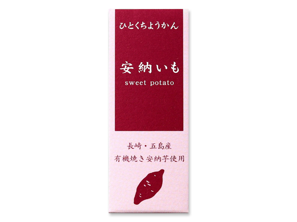 ●北海道産白いんげん豆の白生餡を甜菜糖で炊き上げ、有機安納芋を配合した芋羊羹です。食べきりやすいミニサイズに仕上げました。